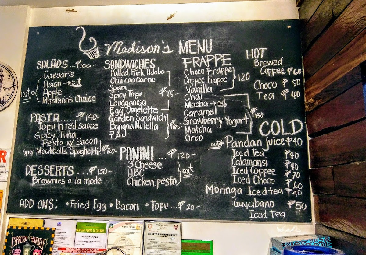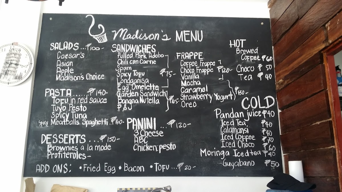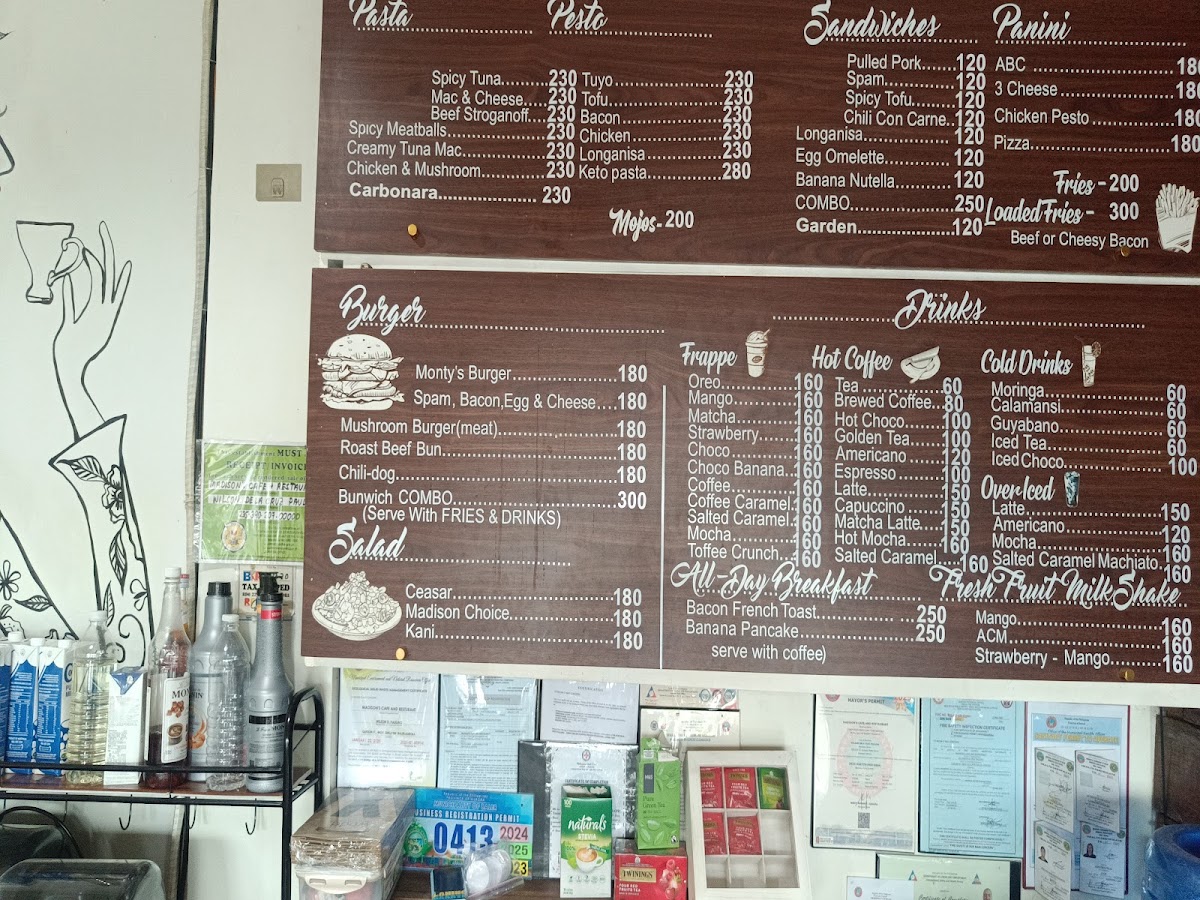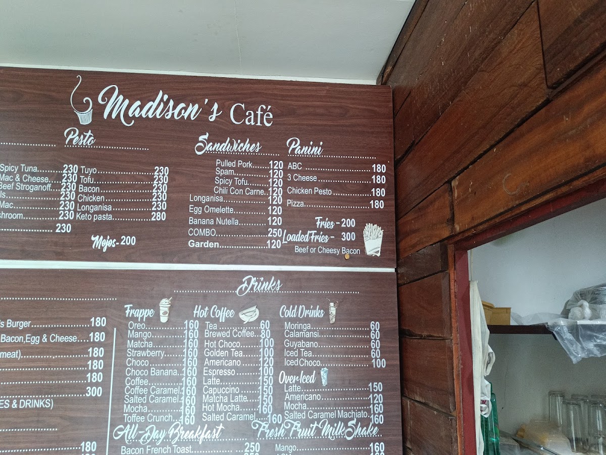 Madison's Cafe and Restaurant in Baler, Philippines, offers a delightful and diverse menu that caters to a wide range of tastes. The pasta section is a highlight, with options like Spicy Meatballs Spaghetti and Mac and Cheese, both priced to appeal to casual diners. For a more adventurous option, try the Spicy Tuna Spaghetti or the creamy Beef Stroganoff Spaghetti. Their salads, including the Caesar Salad and Madison's Choice Salad, provide fresh, crisp flavors perfect for a light meal or side dish.